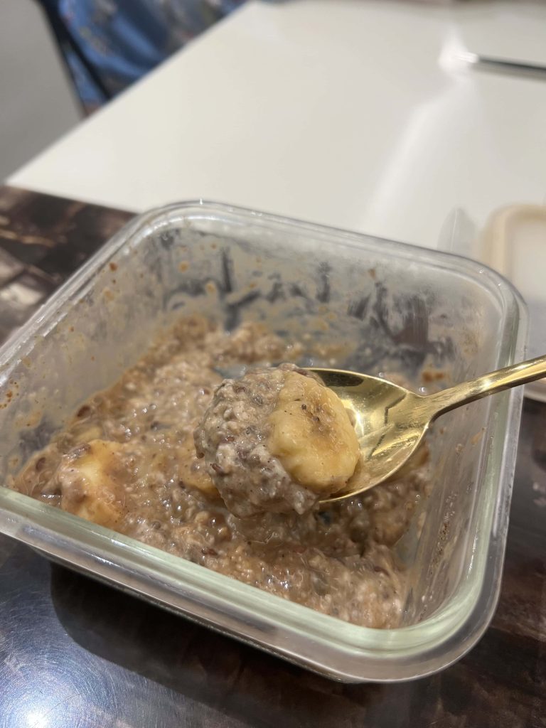 Saturday: Almond Butter Banana Chocolate Chip Cinnamon Overnight Oats (ABBCCOO)
