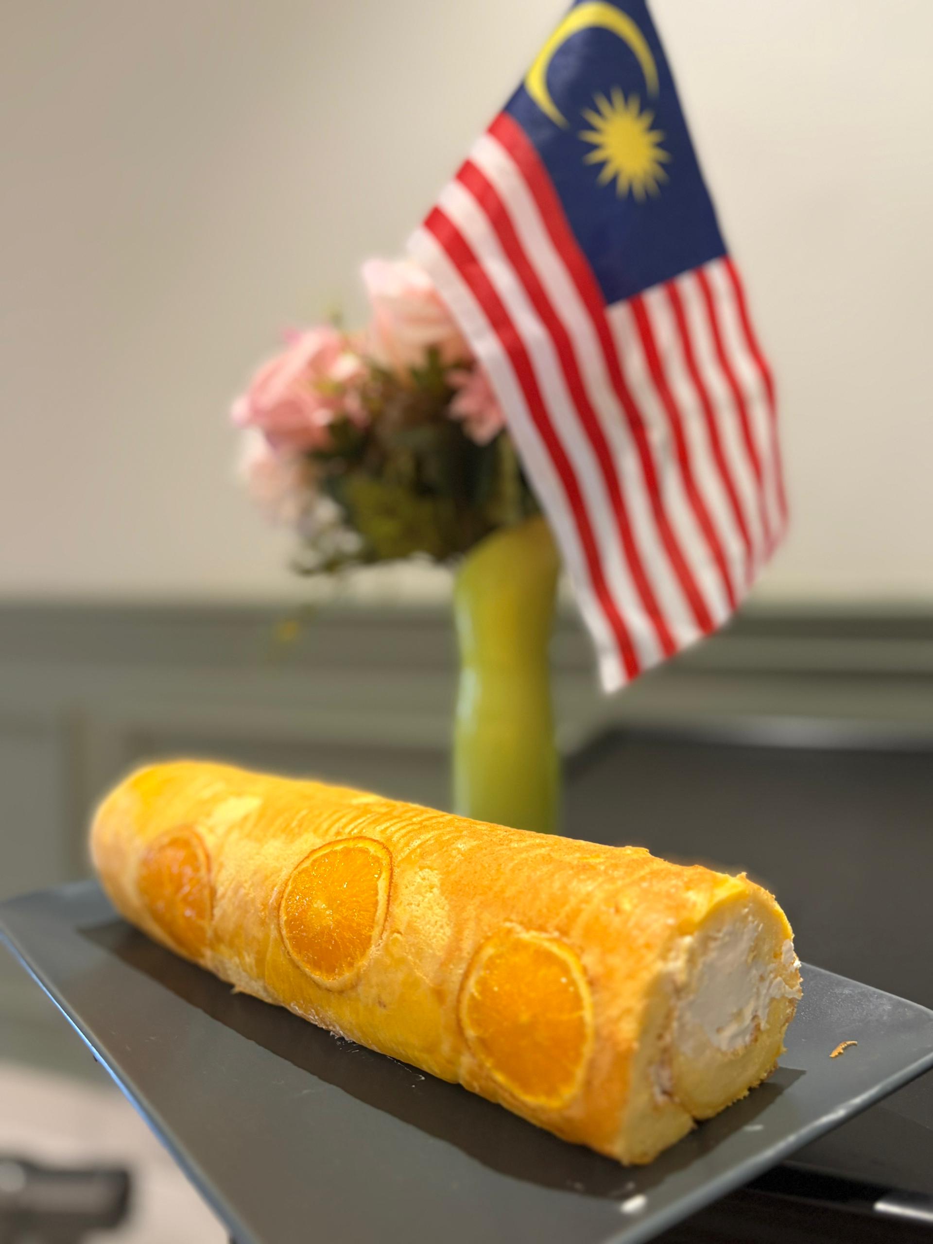 It’s Independence Day for us Malaysians, so my mom and I baked this orange Swiss roll. I totally needed an excuse. Citrus-y… but kind of salty.