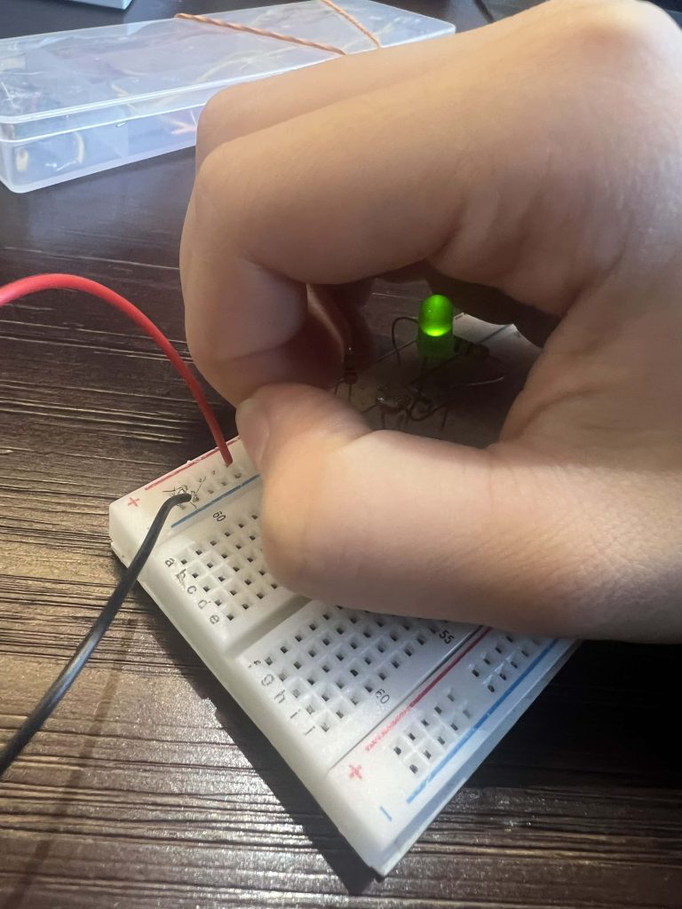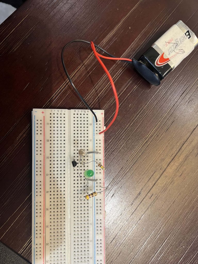 My battery was down to 6V, so my current would also decrease. To compensate for this, I reduced the value of R2 so my LED would receive roughly the same amount of current.